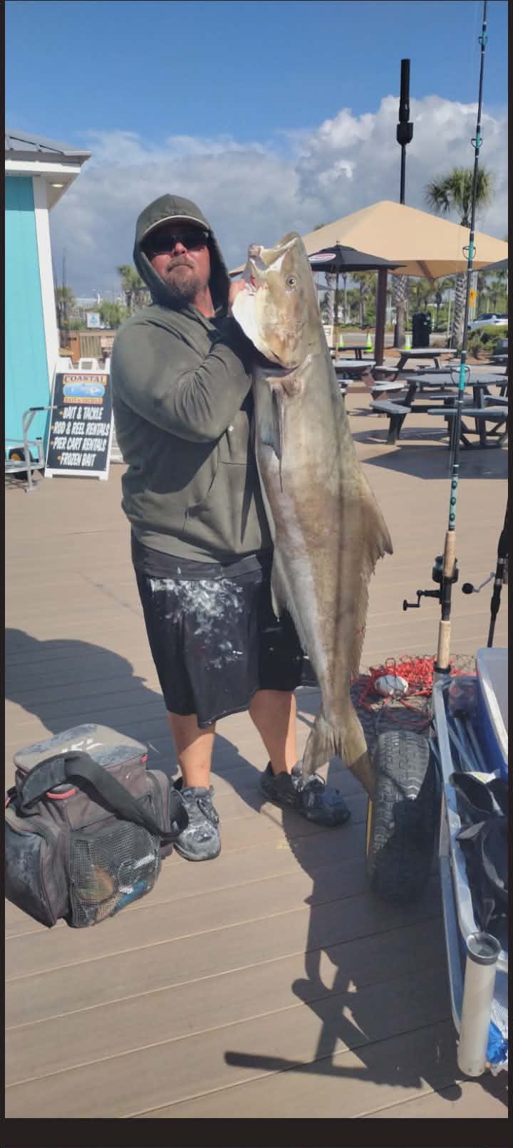 Thursday 16th: water temp 72.9 S 8-9mph in the a.m. / 76.1 S 9-12mph in the p.m. The water was clean. There was a 65-pound Cobia decked. It was the first caught on the City Pier. Kyle was the lucky angler. He caught it this morning on a live Threadfin Herring and a Carolina Rig.