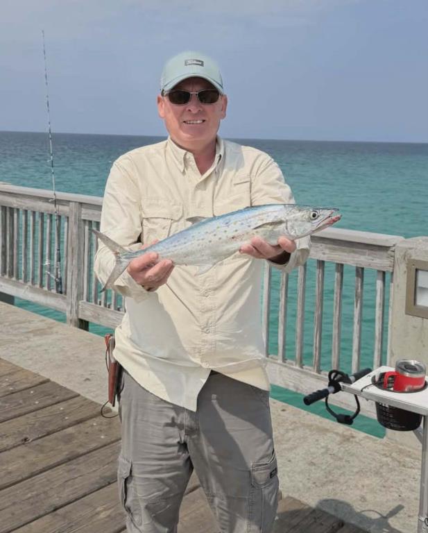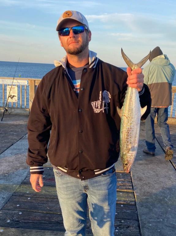 Wednesday 22nd: water temp 70.9 ENE 5-11mph in the a.m. / 72.5 Sm11-15ph in the p.m. The water was clean. There was a hot Bonita and Spanish Mackerel bite this morning. Most anglers were able to catch their limit. Kim got in on the Bonita rally. Rod had a great morning. He caught three Bonita, several Spanish, 2 Flounder (16” and 14.5”), and a Long Nose Gar on the Flounder jig. The afternoon brought more Spanish with some Axe Handles hitting the deck. Skinny water produced several Pompano.