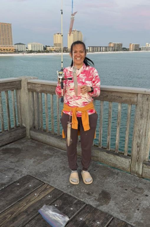 Friday: water temp 70.2 ENE 4-9mph in the a.m. / 73.9 SE 7-10mph in the p.m. The water was clean. There were over 20 Pompano caught throughout the day. Brenda reached her limit early in the morning and also decked a Red Drum. The Spanish Mackerel were thick with several anglers getting their limit of 15. Lorena, a first-time pier fisherwoman got her limit. Casey threw on a nice Cobia only to have it eat the Squid tipper off the jig and not eat the jig. Squid were being caught all day. Cigar minnows were caught in the early morning. None were around for the rest of the day.