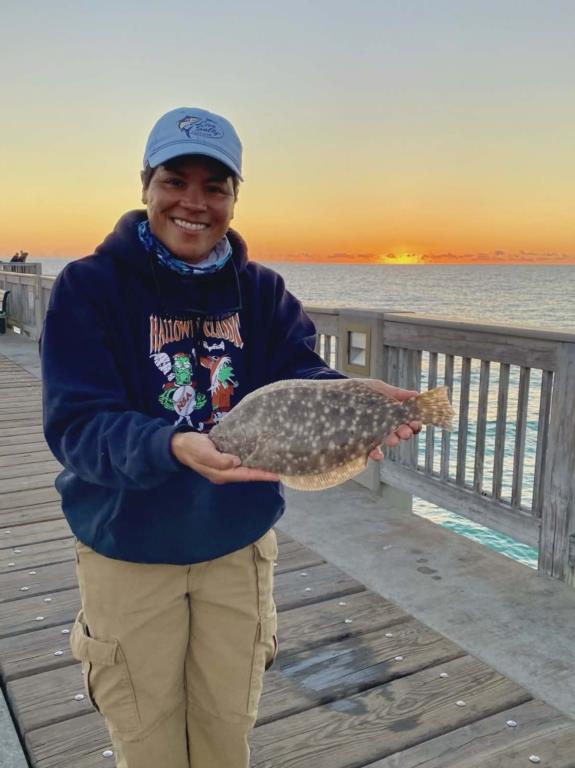 Monday: water temp 56.1 N 7-10mph in the a.m. / 59.4 N 6-12mph in the p.m. The water was clean. Hayden got a keeper Flounder this morning. Brenda got her first Squid of the year.