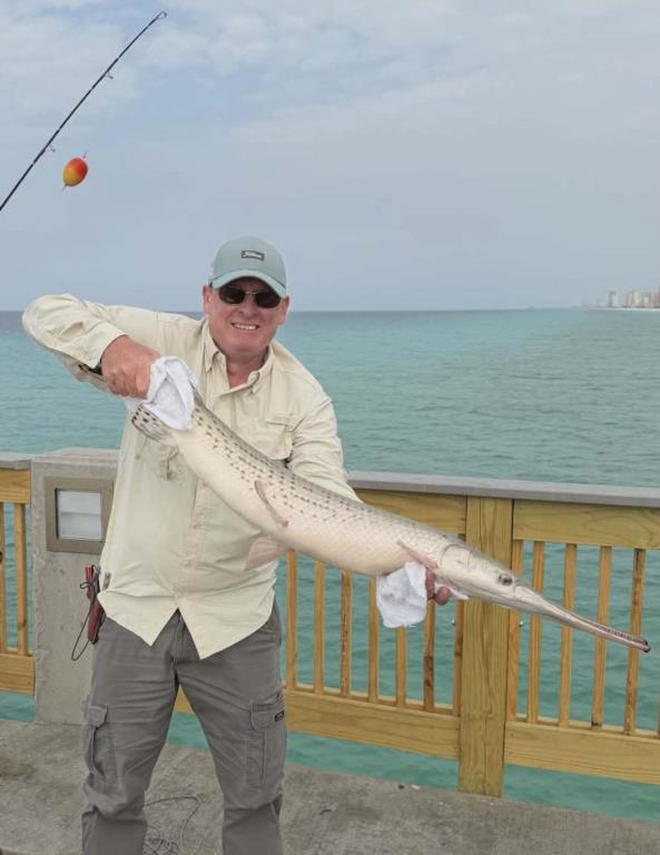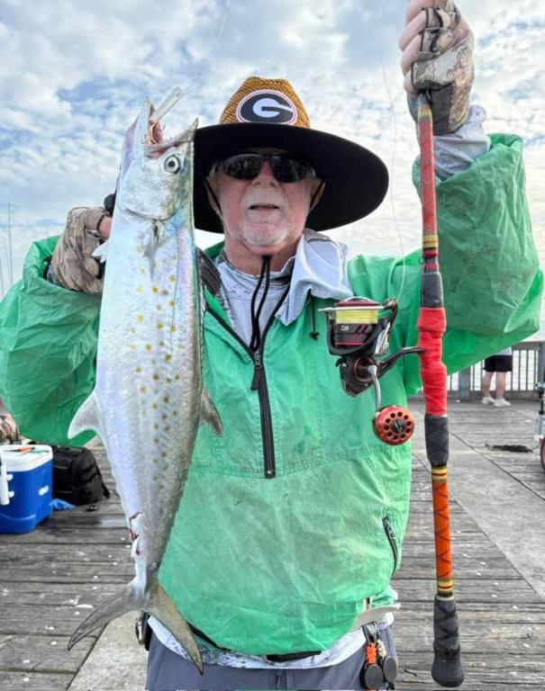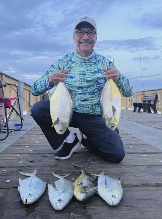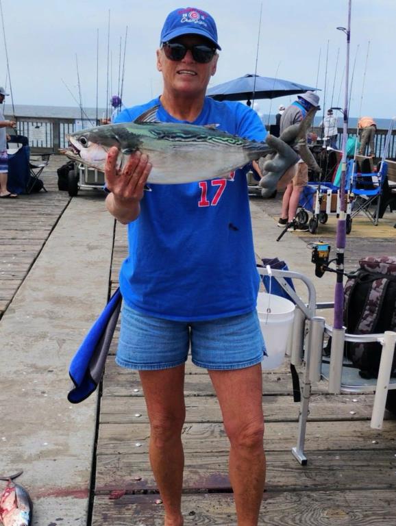Wednesday 22nd: water temp 70.9 ENE 5-11mph in the a.m. / 72.5 Sm11-15ph in the p.m. The water was clean. There was a hot Bonita and Spanish Mackerel bite this morning. Most anglers were able to catch their limit. Kim got in on the Bonita rally. Rod had a great morning. He caught three Bonita, several Spanish, 2 Flounder (16” and 14.5”), and a Long Nose Gar on the Flounder jig. The afternoon brought more Spanish with some Axe Handles hitting the deck. Skinny water produced several Pompano.