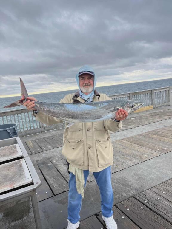 Sunday: water temp 74.7 ESE 5-12mph in the a.m. / 75.7 between 1:00 to 2:00 then fell to 74.7 by 5:00p.m. The water was clean. Mark F. caught a “slot” Red Drum in the shallows. There was one small King Mackerel hooked and lost due to getting tangled with other anglers. A few Spanish Mackerel and a Bonita was decked. There were more Spanish in the afternoon. Cigar Minnows were available for live bait.
