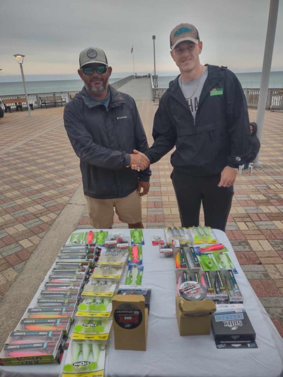 The 6-week tournament began Oct. 01, and concluded Nov. 12th at 6:00 p.m. We had 108 anglers competing for the largest King Mackerel by weight. There were many fish caught with a good percentage over 20 pounds. Hachid and Jake set a high bar with their 33.48# and 29.15# catches to hold their positions to the finish. Hachid and Jake received their first and second place tackle prizes provided by our great sponsors: Rapala www.rapala.com and D.O.A. www.doalures.com . We extend a special thanks to Vince Martin, Bay County Parks and Recreation, Parks Division Manager for being present to congratulate the winners.