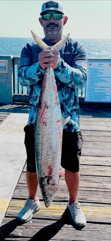Thursday 02nd: water temp 70.7 ESE 8-12mph in the a.m. / 73.0 S 17-22mph in the p.m. The water was clean. The Pompano bite cooled some from the past few days, but several were still caught. George got a huge one that was between 4-5 pounds. Spanish Mackerel were caught throughout the day. Hachid is the man! He showed up midafternoon and said he was going to catch a King. Fifteen minutes later he did just that. He was casting his jerk bait and got hit by a nice King. It was about 20 pounds. Congrats Hachid!