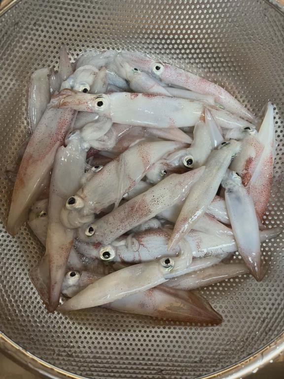 Saturday: water temp 59.7 E 5-10mph in the a.m. / 60.8 SE 8-10mph in the p.m. The water was clean. There were no fish caught but Squid came in late day. George M. got these.