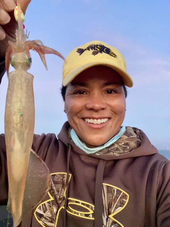 Tuesday: water temp 59.5 ESE 9-12mph in the a.m. / 61.0 S 3-5mph in the p.m. The water was almost clean. No fish were caught. A were a few Squid late afternoon. Brenda got 5.