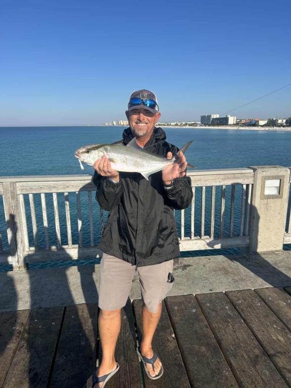 Thursday: water temp 81.7 NE 6-9mph in the a.m. / 82.2 NNE 5-10mph in the p.m. The water was clean. There was only a couple of Spanish Mackerel in the morning. The afternoon saw lots of Ladyfish and a couple more small Spanish. There were Alewives available for live bait.