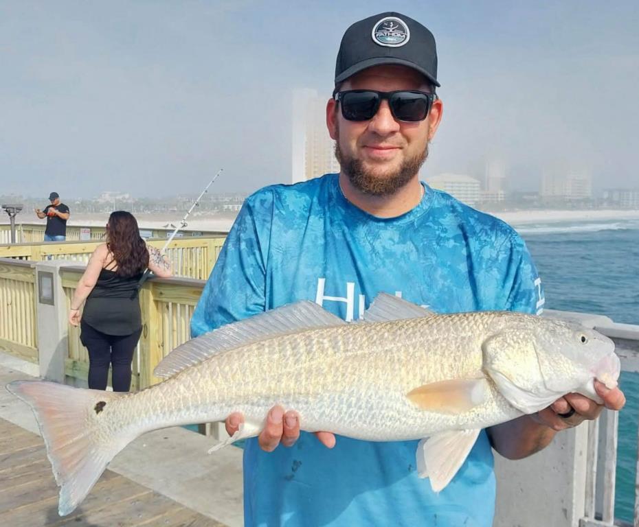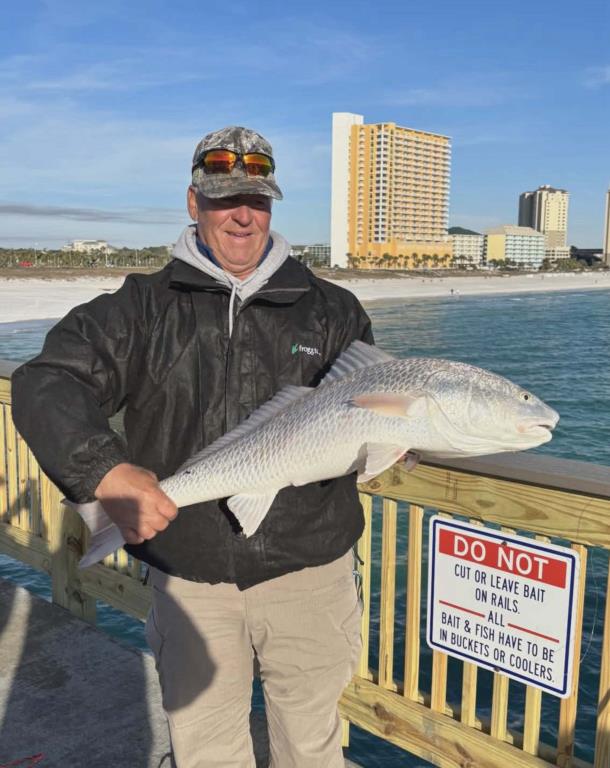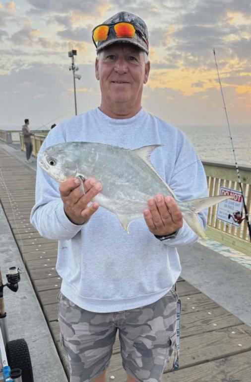 Friday: water temp 63.0 SSE 2-7mph in the a.m. / 64.4 S 8-10 mph in the p.m. The water was dirty in the shallows and Bay Water with a lot of floating debris at the end. There were a few Spanish Mackerel caught. Steve M. got a couple of Pompano. Brandon M. got a Red Drum a couple of inches over slot. There were a few Squid in the very early morning.