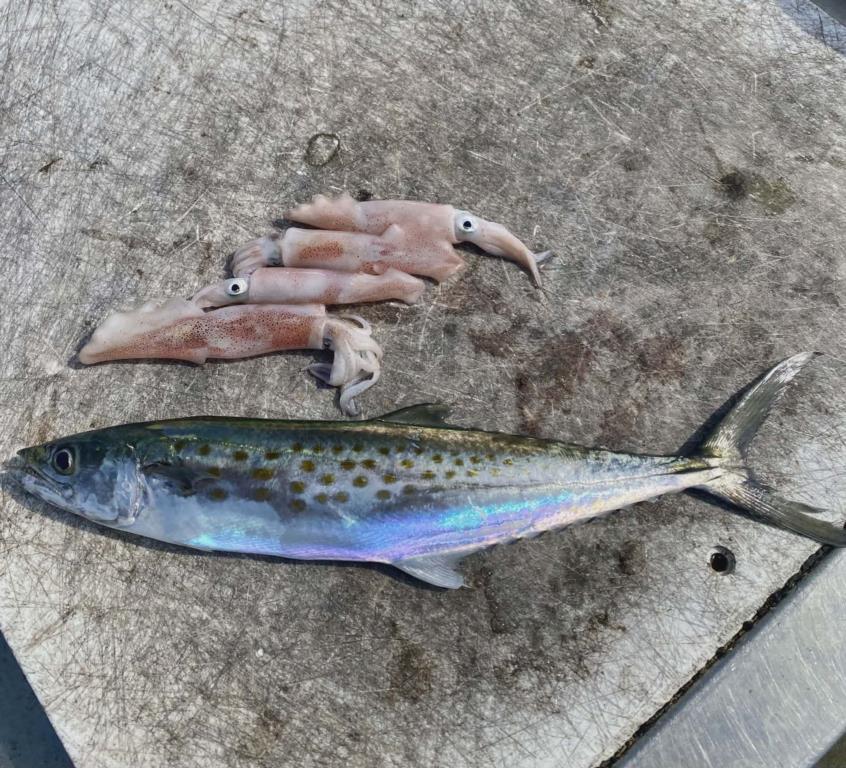 Saturday: water temp 63.9 SE 5-8mph in the a.m. / 65.5 SW 5-10mph in the p.m. The water was silty. There were a few Squid but otherwise very slow.