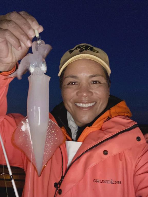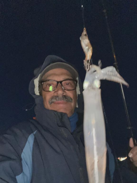 Monday: water temp 56.1 N 7-10mph in the a.m. / 59.4 N 6-12mph in the p.m. The water was clean. Hayden got a keeper Flounder this morning. Brenda got her first Squid of the year.